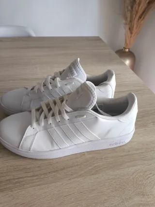 Poco uso. Escuchó ofertas en todos los artículos de mi perfil. Zapatillas deportivas Adidas en color blanco. Un clásico para el día a día. - Diseño con tres franjas laterales. - Cierre de cordones.
