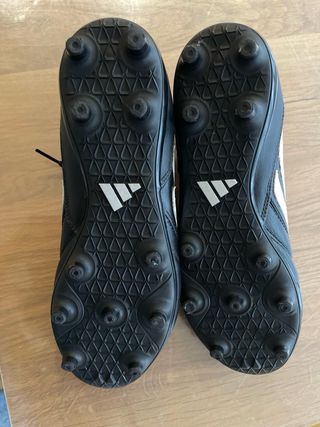 Zapatillas de fútbol con tacos. - Diseño clásico con tres rayas blancas. - Cierre de cordones. - Material sintético. solo se han usado una vez! estan como nuevas sin caja ni etiquetas.
