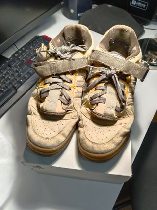 Zapatillas ADIDAS FORUM LOW BAD BUNNY: 70€. Marca ADIDAS. Modelo FORUM LOW. Edición Colaboración BAD BUNNY. Alta calidad con los mismos materiales que la original y en perfecto estado. Incluye la bolsa de cuerdas de bad bunny y sus respectivas ligas de distintos colores, al igual que las lengüetas intercambiables con el mismo mecanismo que la original. Color: Tonalidades CAFÉ (Marrón/Beige). Talla 42.¡PRECIO NEGOCIABLE! Cualquier duda sobre el producto, contacte por privado.