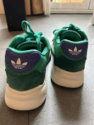 Zapatillas Adidas Campus en color verde y blanco, talla 39. Se encuentran en muy buen estado. - Diseño clásico de Adidas. - Detalles en blanco. - Suela de goma.