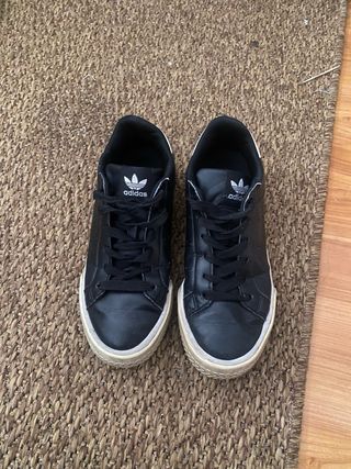 Zapatillas Adidas en color negro. Perfectas para el día a día. - Cierre con cordones. - Diseño clásico con las tres bandas. - Logo de Adidas en el lateral. Están nuevas, solo se han estrenado una vez.