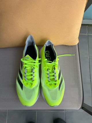 Zapatillas Adidas Adizero Boston 12, usadas solo 5 veces. Ideales para correr. - Color verde lima y negro. - Talla 44.5.