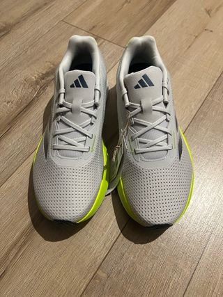 Vendo estas Adidas Duramo SL M, perfectas para entrenar, caminar o usar en el día a día. Son muy ligeras, transpirables y con buena amortiguación. NUEVAS - Diseño moderno en gris con detalles en lima. - Parte superior de malla transpirable. adidas, nike, asics, mizuno, brooks, deporte, running, gimnasio