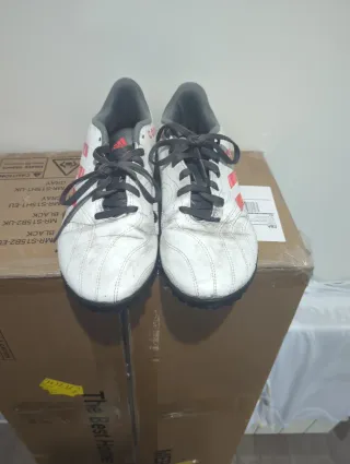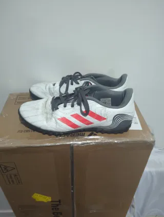 Zapatillas de fútbol Adidas Copa, ideales para césped artificial. - Color blanco con detalles en rojo. - Talla 43⅓ - Cierre con cordones. -En perfecto estado, solo necesitan una limpieza