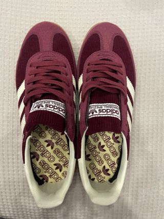 Zapatillas Adidas Spezial en color granate. Un diseño clásico con detalles en blanco y suela de goma. - Parte superior de ante y textil. - Tres rayas y talón en blanco. - Suela de goma gum. - Detalle Spezial en el lateral. CAJA ROTA