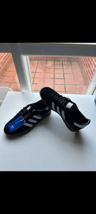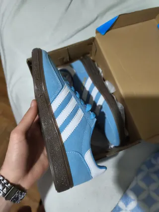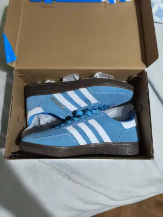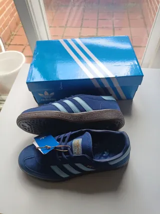 Zapatillas Adidas Spezial azules talla 38,5, estan literalmente nuevas, pero tienen un corte en la lengueta pero si pones los cordones por los ultimos agujeros se tapa ese corte y ni se nota, de ahi su precio