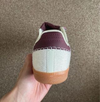 Zapatillas Adidas Samba en color morado y blanco. - Diseño clásico. - Tres rayas blancas características de Adidas. - Suela de goma. - Logo de Adidas en la lengüeta y plantilla. - He comenzado a usar plantillas y es un calzado muy bajo que no me permite meter caminar. Tengo más en mi perfil