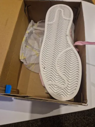 Zapatillas Adidas Campus en color rosa, talla 40. La caja pone talla 41.5 pero talla un 40 holgado. - Diseño icónico de Adidas. - Materiales de gamuza. - Cordones anchos en tono rosa. - Detalle metálico con el logo de Adidas en la lengüeta.