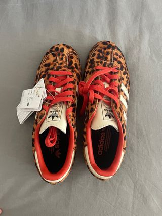 Zapatillas Adidas Samba OG con estampado de leopardo y cordones naranjas. Fueron un regalo de navidad, pero no me sirven y solo había 15 días para cambiarlas.