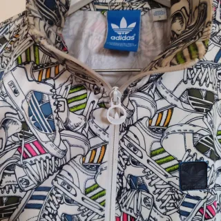 Chaqueta deportiva con un llamativo diseño de zapatillas. - Estampado integral de zapatillas. - Cierre de cremallera frontal. - Bolsillos laterales con cremallera.