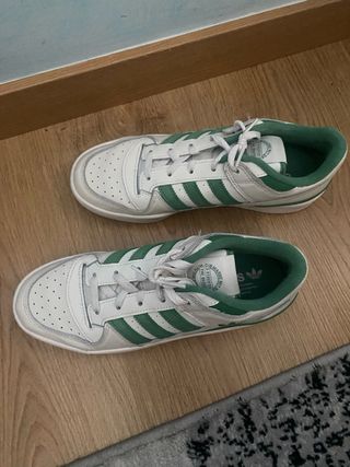 Vendo un par de zapatillas Adidas en perfecto estado. Son de color blanco y verde. - Ideales para el uso diario. - Diseño clásico y elegante. - Cómodas y ligeras.