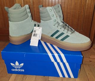 Botas altas Adidas Gazelle en color verde y suela marrón. - Diseño tipo bota. - Cierre de cordones. - Detalle de las tres rayas de Adidas.