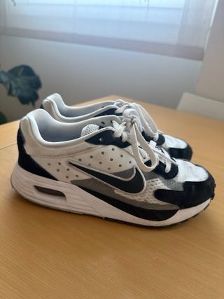 Zapatillas deportivas Nike Air Max en tonos negro y blanco. Diseño moderno y cómodo. - completamente nuevas a estrenar. - Parte superior de malla y ante. - Suela con unidad Air visible. - Cierre de cordones.