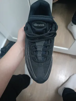 Zapatillas deportivas Nike Air Max 95 en color negro. Reflectantes. Talla 43. Perfecto para conjuntar con tu outfit y el precio negociable. - Diseño icónico con capas superpuestas. - Unidad Air visible en la suela. - Cierre de cordones.