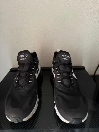 Zapatillas deportivas Nike Air Max 270 React en color negro y blanco. Perfectas para el día a día. - Diseño moderno y cómodo. - Suela con amortiguación. - Logo de Nike en el lateral.