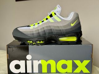 Zapatillas Nike Air Max 95 OG con detalles en color neón. - Diseño icónico con capas superpuestas. - Unidad Air visible en la suela. - Combinación de malla y materiales sintéticos. Tallas disponibles 42,42.5