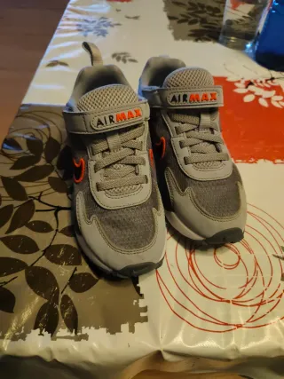 Zapatillas deportivas Nike Air Max para niño. Casi sin estrenar. No le valen. Son originales - Color gris con detalles en naranja. - Cierre de velcro y cordones. - Diseño deportivo y cómodo.