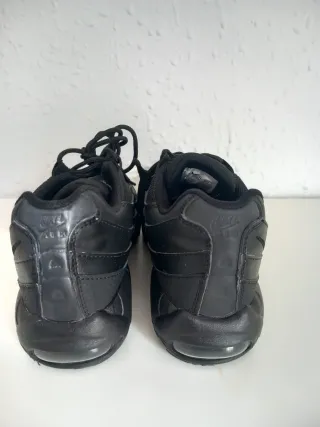 Zapatillas Nike Air Max originales en color negro total. Muy cómodas y fáciles de combinar con cualquier look. ✔ Talla 38 (24 cm) ✔ Color negro ✔ Muy poco uso ✔ Suela en muy buen estado (ver fotos) ✔ Sin roturas ni desperfectos Perfectas para uso diario, colegio o deporte ligero. Se entregan limpias y listas para usar. 📍 Entrega en mano o envío por Wallapop.