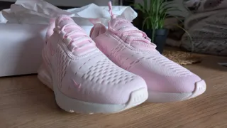 Sin estrenar, en su caja. Zapatillas deportivas Nike Air Max 270 en color rosa y blanco. Diseño moderno y cómodo. - Parte superior de malla transpirable. - Unidad Air Max visible en el talón. - Suela de goma para mayor tracción.