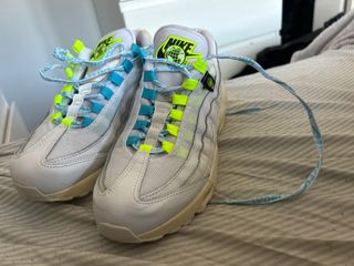 Zapatillas deportivas Nike Air Max 95 en talla 38.5. - Diseño multicolor con detalles en blanco. - Cordones con estampado. - Logo de Nike en la lengüeta.