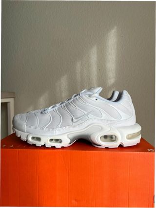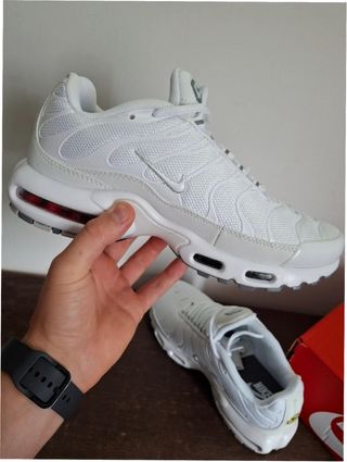 Zapatillas Nike Air Max Plus TN en color blanco. Un clásico para el día a día. - Diseño moderno y cómodo. - Suela con amortiguación visible. - Parte superior de malla transpirable.