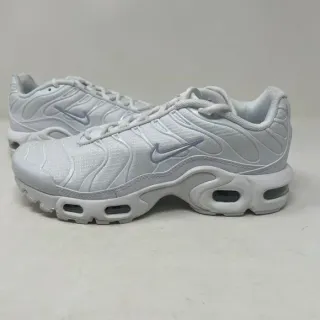 Zapatillas Nike Air Max Plus en color blanco. - Diseño icónico con líneas onduladas. - Unidad Air Max visible en la suela. - Parte superior de malla transpirable.
