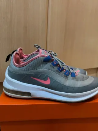 Zapatillas deportivas Nike Air Max Axis. Talla 38.5 -39 - Modelo: (GS) AH5222 015. - Color principal: Gris. - Detalles en color rosa y azul.