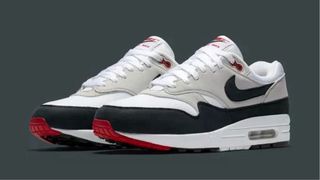 Zapatillas deportivas Nike Air Max 1. - Diseño icónico con detalles en rojo y blanco. - Combinación de materiales para un look moderno.
