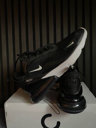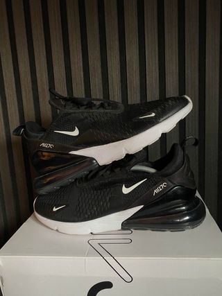 Zapatillas Nike Air Max 270 en color negro y blanco. Un diseño moderno y cómodo. Usadas en 4-5 ocasiones. Envío rápido y protegido. - Parte superior de malla transpirable. - Unidad Air Max 270 en el talón para una amortiguación suave. - Suela de goma para mayor durabilidad.