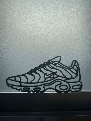 Detalle decorativo de zapatilla Nike Air Max Plus. - Diseño recortado en silueta. - Ideal para colgar en pared. #nike #nikeairmaxplus1 #niketn #niketuned #zapatillas