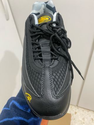 Zapatillas Nike Air Max 95 en colaboración con Corteiz. Un diseño llamativo en negro con detalles en amarillo. - Combinación de colores negro y amarillo. - Logotipo de Corteiz en la lengüeta y lateral.