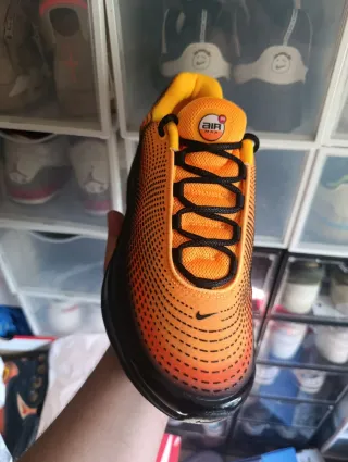 Zapatillas Nike Air Max Plus con un diseño vibrante y moderno. Es un regalo y no las voy a usar. Compradas en fot locker. El 8 de diciembre. Tengo factura. - Combinación de colores verde y naranja. - Talla 46.
