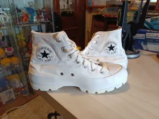 Botas altas Converse Chuck Taylor con plataforma. - Diseño clásico en lona. - Cordones blancos. - Suela gruesa y dentada. En buen estado, poco uso, se envía por wallapop o en mano en Chiclana.