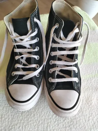 Vendo Converse All Star de cuero negro, talla 40. Originales. Me las puse dos días al final del embarazo y ahora me quedan grandes. Llevadas dos veces, están nuevas.