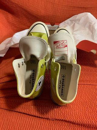 Zapatillas Converse Chuck Taylor All Star originales, en versión mesh / rejilla, un modelo diferente y muy poco común 🖤 Negras en tejido de rejilla, efecto transparente → se ven genial con calcetines blancos, negros o de color 👟 Caña alta (Hi), clásico Converse ⭐ Logo lateral translúcido, no el parche blanco típico 🟡 Plantilla interior amarilla Converse, cómoda y original ⚪ Cordones blancos originales 👣 Suela blanca muy limpia, apenas signos de uso 📏 Talla EU 36 (US 5.5 · UK 3.5 · 22,5 cm) Estado Prácticamente nuevas 📦 Envío rápido y bien protegido 💬 Cualquier duda, más fotos o medidas, escríbeme 😊