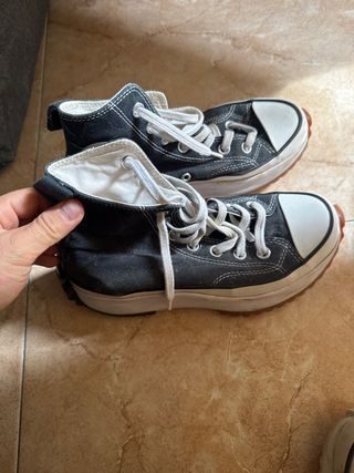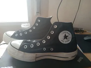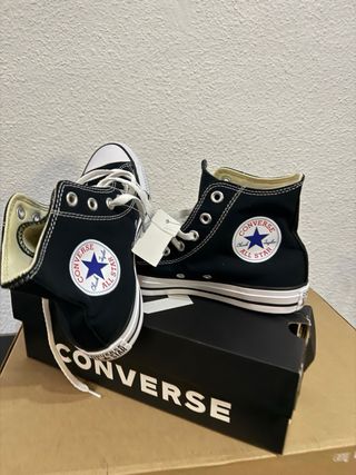 Zapatillas Converse All Star de caña alta, color negro y blanco. Se venden porque no se usan. - Modelo clásico de lona. - Cierre con cordones blancos. - Suela de goma. - Detalle de plataforma.