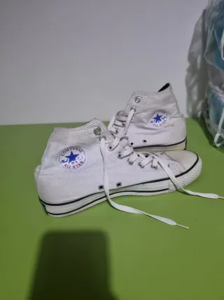 Zapatillas altas de estilo casual para mujer. - Diseño clásico Chuck Taylor All Star. - Plataforma blanca. - Cordones blancos. - Dos puestas literalmente. Nuevas cuestas 90€