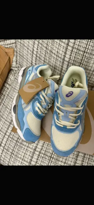 Zapatillas Asics NYC a estrenar, vienen con su caja original. - Diseño moderno en tonos beige y gris. - Cierre con cordones. - Logo de Asics en la lengüeta y laterales.