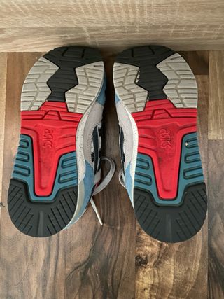 Zapatillas deportivas Asics Gel Lyte III. - Diseño moderno con detalles en azul y rojo. - Materiales de calidad para mayor comodidad. - Suela con tecnología Gel para amortiguación.