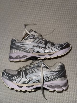 Zapatillas Asics Gel Kayano 14 en color plata. Se encuentran sin usar y conservan la etiqueta - Modelo Gel Kayano 14 - Diseño elegante y deportivo - Cómodas y ligeras - Tallan como 41.5 - No dispongo de la caja