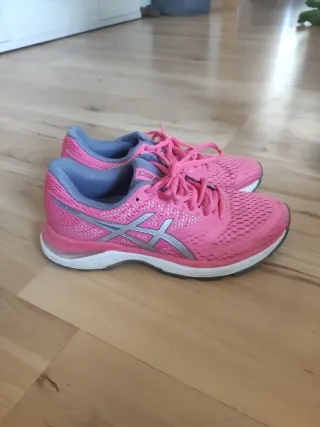 Zapatillas deportivas ASICS Oasis en color rosa y plateado. Modelo Gel pulse 10 Usado un par de veces, en perfecto estado - Diseño deportivo. - Cierre con cordones. - Suela blanca y gris.