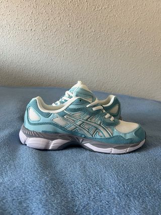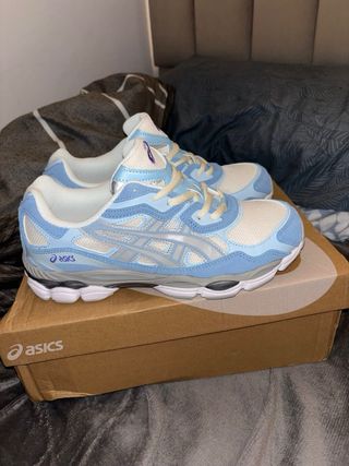 Zapatillas Asics Gel NYC en tonos azules y blancos. - Diseño deportivo. - Detalles en malla y ante.