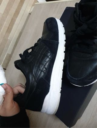 Zapatillas Asics Gelsaga en color negro.Talla un 39 pequeño. Puestas una vez con poca duración por lo que están en muy buen estado, aunque tiene dos marcas que señalo. - Diseño deportivo. - Cierre con cordones. - Logo de Asics en el lateral y la suela.