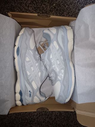 Zapatillas deportivas Asics Gel Nimbus 10.1, nuevas y listas para estrenar. Un diseño moderno y cómodo. - Color plateado y blanco. - Cierre de cordones. Completamente nuevas a estrenar