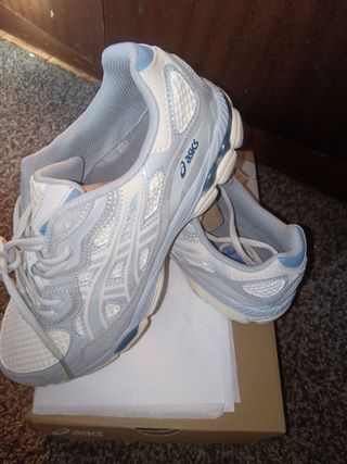 Zapatillas Asics GEL-NYC en tonos grises y blancos. - Diseño moderno y deportivo. - Detalles de la marca en los laterales. - Cordones blancos. - Sin estrenar.✅ - Con su caja original.✅ ‼️Acepto ofertas‼️