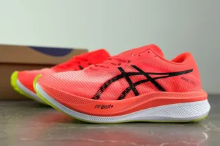 Zapatillas deportivas Asics Magic Speed en llamativos tonos coral y negro Diseñadas para ofrecer rendimiento y estilo. - Modelo: Magic Speed - Tecnología FF Blast+ - Detalle de logo Asics en negro - Cordones a juego con el color principal