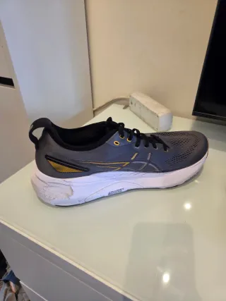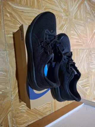Las he llevado 6 veces aprox y solo para andar, sin las plantillas originales ya que uso las mias propias. Las plantillas originales en la caja y sin uso. Zapatillas deportivas Asics Gel Cumulus 26 en color negro. - Talla 46.5 (equivalente a UK 11). - Diseño moderno y cómodo.
