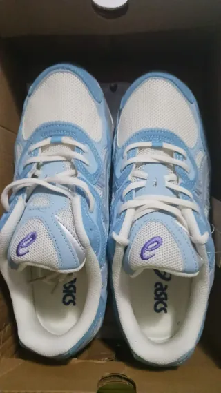 Zapatillas deportivas Asics Gel en tonos azules y blancos. Perfectas para el día a día. - Diseño deportivo. - Combinación de colores vibrante. -Precio: 40 (negociable)