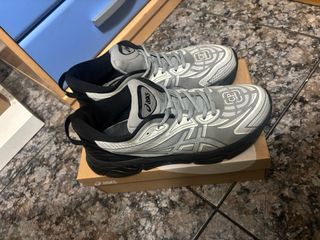 Zapatillas deportivas Asics Gel en talla 44. Combinan tonos grises y blancos. 📍 Recoger en Sabadell 📍 !! Atención Precio NO Negociable !! -Producto nuevo a estrenar - Diseño deportivo. - Cierre con cordones.