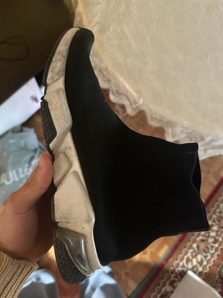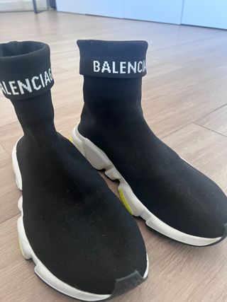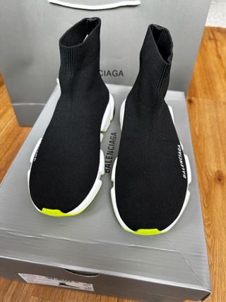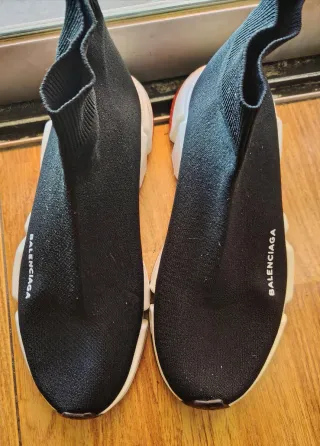 Vendo zapatillas Balenciaga Speed Sock. Son de color negro y están en buen estado, aunque presentan un pequeño desgaste en la parte superior. - Modelo Speed Sock. - Talla (a determinar según la talla del comprador). - Se venden dos zapatillas.